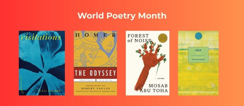 April is World Poetry Month! To celebrate, we’ve curated a collection of new and bestselling poetry titles that are all perfect for higher education courses and discussion. This collection features Spring 2026 titles from poets including Julia Alvarez, Camonghne Felix, and Amit Majmudar, among others, as well as bestselling classics from poets like Homer, Mary Oliver, and Rumi.